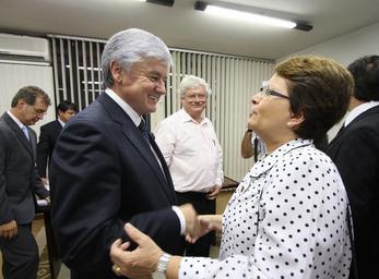Keywords: Rossoni recebe os cumprimentos da reitora da UEL, Nadina Moreno. Foto: Nani Gois / Alep