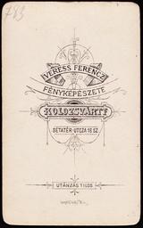 | Keywords: Sétatér utca 16., Veress Ferenc fényképészete. Fortepan 81416.jpg  Check categories 2016 August 28 hu Sétatér utca 16 Veress Ferenc fényképészete Location Romania Transylvania Cluj-Napoca Tags verso photographer studio Title Sétatér utca 16 Veress Ferenc fényképészete http //www fortepan hu/_photo/download/fortepan_81416 jpg 1900 Fortepan 81416 http //www fortepan hu/_photo/download/fortepan_81416 jpg http //www fortepan hu/ lang en img 81416 Unknown The release at fortepan hu is CC-BY-SA-3 0 As the photographer is unknown or pseudonymous and the photograph is Age 1900 01 01 years old it is considered public domain both in the country of publication Hungary and the USA where Wikimedia Commons is hosted See Fortepan HU for more information on related uploads PD-anon-70-EU PD-1923 PD-1923 DEFAULTSORT Fortepan 081416 1900 photographs Images uploaded by Fæ |