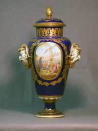 | Keywords: Sèvres Porcelain Manufactory - One of a Pair of Vases (Vase à bandes) - Walters 48560.jpg  Walters Art Museum artwork Creator Manufacture nationale de Sèvres This neoclassical vase is distinguished by its satyr-head handles At Sèvres a plaster model for these shapes is inscribed with the name of the sculptor Etienne-Maurice Falconet 1716-1791 but the designer was more likely the director of sculpture at the manufactory Louis-Simon Boizot 1743-1809 Jean-Louis Morin 1731-1787 decorated the vases with harbor scenes and Jean Pierre Boulanger père 1722-1785 was responsible for the gilding 1776 soft-paste porcelain with paint and gilt cm 42 6 accession number 48 560 12454 Lady Ashburaton Collection E M Hodgkins Collection Paris no 45 date and mode of acquisition unknown A Seligmann Rey and Co New York Henry Walters city Baltimore Walters Art Museum Henry Walters Acquired by Henry Walters 1928 Factory Mark Intertwined L1s in blue; Date Letter in blue Y 1776 ; Decorator's Mark In blue M Morin Jean-Louis ; Gilder's Mark In blue B Boulanger Jean Pierre place of origin Sèvres France Walters Art Museum license Sèvres porcelain in the Walters Art Museum Media contributed by the Walters Art Museum needs artist review Jean-Louis Morin Louis-Simon Boizot Gilded vases |
