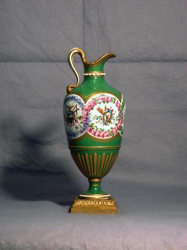 | Keywords: Sèvres Porcelain Manufactory - One of a Pair of Pitchers (Vase en burette) - Walters 48764 - View A.jpg These pitchers with apple green grounds are decorated with trophies enclosed in floral wreaths ca 1767 soft-paste porcelain with painted enamel decoration cm 12 8 accession number 48 764 11741 Henry Walters Baltimore date and mode of acquisition unknown Walters Art Museum Henry Walters Acquired by Henry Walters Decorator's Mark Floral wreaths possibly by Jean-Baptiste Tandar aîné 1729-1816 place of origin Sèvres France Walters Art Museum license Sèvres porcelain in the Walters Art Museum Media contributed by the Walters Art Museum needs category review Painted enamel art in the Walters Art Museum Porcelain pitchers |
