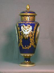 | Keywords: Sèvres Porcelain Manufactory - One of a Pair of Vases (Vase à bandes) - Walters 48560 - View A.jpg  Walters Art Museum artwork Creator Manufacture nationale de Sèvres This neoclassical vase is distinguished by its satyr-head handles At Sèvres a plaster model for these shapes is inscribed with the name of the sculptor Etienne-Maurice Falconet 1716-1791 but the designer was more likely the director of sculpture at the manufactory Louis-Simon Boizot 1743-1809 Jean-Louis Morin 1731-1787 decorated the vases with harbor scenes and Jean Pierre Boulanger père 1722-1785 was responsible for the gilding 1776 soft-paste porcelain with paint and gilt cm 42 6 accession number 48 560 12454 Lady Ashburaton Collection E M Hodgkins Collection Paris no 45 date and mode of acquisition unknown A Seligmann Rey and Co New York Henry Walters city Baltimore Walters Art Museum Henry Walters Acquired by Henry Walters 1928 Factory Mark Intertwined L1s in blue; Date Letter in blue Y 1776 ; Decorator's Mark In blue M Morin Jean-Louis ; Gilder's Mark In blue B Boulanger Jean Pierre place of origin Sèvres France Walters Art Museum license Sèvres porcelain in the Walters Art Museum Media contributed by the Walters Art Museum needs artist review Jean-Louis Morin Louis-Simon Boizot Gilded vases |