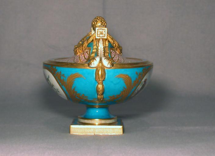 | Keywords: Sèvres Porcelain Manufactory - Vase cassolette Bachelier - Walters 48564 - Profile.jpg Walters Art Museum artwork Creator Manufacture nationale de Sèvres This vase shows a Flemish cavalier scene painted in the manner of P Wouwermans 1619-1668 by Charles Nicolas Dodin The gilding is by Etienne-Henry Le Guay 1779 soft-paste porcelain cm 20 accession number 48 564 34223 Earl of Pembroke Earl of Pembroke Collection Sale May 8 1851 lot 383 Mrs Lyne Stephes date and mode of acquisition unknown Baron Schroeder date and mode of acquisition unknown Baron Schroder Sale Christie's July 5 1910 lots 45 and 46 E M Hodgkins Collection Paris no 64 date and mode of acquisition unknown A Seligmann Rey and Co New York Henry Walters city Baltimore Walters Art Museum Henry Walters Acquired by Henry Walters Visible marks Factory Mark Intertwined Lls; Date Letters bb 1779 ; Date Letter Color Blue; Decorator's Mark K Dodin Charles-Nicolas 1734-1803 in blue ; Gilder's Mark LG Le Guay de Saint-cloud Etienne-Henry aîné père 1719/20- c 1799 in black place of origin Sèvres France Walters Art Museum license Porcelain objects perfume burners Perfume burners 18th-century ceramics 1779 in art Sèvres porcelain in the Walters Art Museum Media contributed by the Walters Art Museum needs category review Media contributed by the Walters Art Museum needs artist review Charles-Nicolas Dodin Gilded vases |