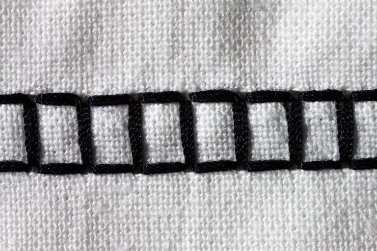 Keywords: sewing machine embroidery black white sew hand labor tinker fabric pattern four corner rectangles macro