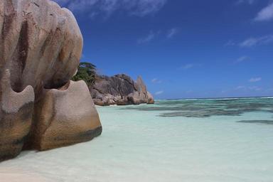 Keywords: seychelles beach tropical island paradise deserted beach holiday blue seaside water's edge