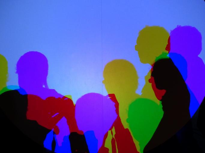 Keywords: shadow shadow play colorful colored shadow mixed colours farbmischung additives penumbra heads silhouettes personal human men women