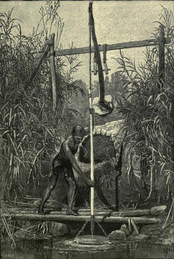 Keywords: Shaduf3.jpg William Jay Dana from an original sketch or watercolor by John Douglas Woodward en Caption center smallcaps shadûf <br>The weight of the water in the bucket is balanced by the lump of Nile mud at the other end of the swinging beam and the water is thus raised to<br>the mouth of the canal with little effort but pulling down the bucket is hard work and the achine is ruinously extravagant in labour Also spelt shadoof or shaduf 1877 “79 http //www archive org/details/picturesquepales04wilsuoft Picturesque Palestine Sinai and Egypt Vol IV https //archive org/stream/picturesquepales04wilsuoft page/186/mode/2up p 187 other versions PD-US PD-100 PD-100 Shadoofs in Egypt John Douglas Woodward Shadoofs in art Picturesque Palestine Sinai and Egypt William Jay Dana |