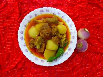 Keywords: Shaljam Gosht (Shalgam Gosht).JPG en شلغم گوشت، شلجم گوشت، گونگلو گوشت، Gongloo Gosht own Miansari66 Cuisine of Karachi Cuisine of Pakistan Cuisine of Punjab India made by User Miansari66 Cc-zero