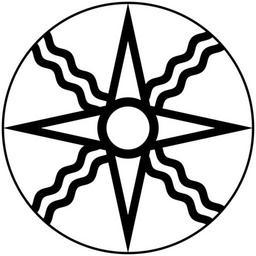 | Keywords: Shamash-sun-symbol.svg A slightly schematized/simplified version of one form of the ancient symbol of the Mesopotamian sun-god Shamash with alternate pointy and wavy rays According to Gods Demons and Symbols of Ancient Mesopotamia An Illustrated Dictionary by Jeremy Black and Anthony Green 1992 ISBN 0-292-70794-0 p 168 it occurs from the Akkadian down to the Neo-Babylonian period and The Akkadian names of the symbol were šamšatu and niphu It was often represented on a pole as a standard For modern symbols which incorporate a version of the Shamash sun-symbol see File Flag of the Assyrian people svg File Iraq state emblem CoA 1959-1965 Qassem svg etc This is an SVG version of File Star of Shamash png attempting to duplicate the appearance of the PNG file but generated from abstract geometry and symmetrical converted from the following vector PostScript source code <pre> /A 0 1 2 pop 18 5 0 35 9 45 13 5 rcurveto 10 4 5 26 5 13 5 45 13 5 rcurveto 18 5 0 35 -9 45 -13 5 rcurveto 10 -4 5 26 5 -13 5 45 -13 5 rcurveto for stroke def 287 287 translate 1 -1 scale 5 2 setlinewidth 0 0 280 5 0 360 arc closepath stroke 20 5 setlinewidth 0 0 58 5 0 360 arc closepath stroke gsave 45 rotate 38 setlinewidth 0 1 3 gsave 39 5 scale dup 2 eq 1 -1 scale if 3 eq 1 -1 scale if 178 -13 5 25 sub moveto A 178 -13 5 52 add moveto A grestore 90 rotate for grestore 18 setlinewidth 4 42 426 42 426 moveto 238 0 lineto 42 426 -42 426 lineto stroke 90 rotate repeat showpage EOF</pre> Archaeological star glyphs Star of Shamash Images with PostScript source code |