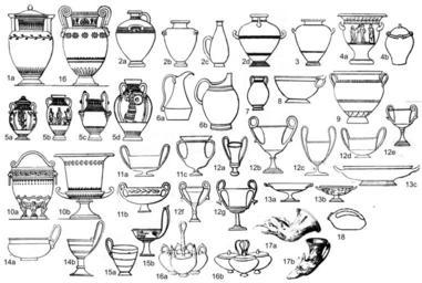 Keywords: Shapes of ancient greek pottery.jpg Ceramica greca per forma 1а - cratere a colonnette 1b - cratere a vòlute; 2 - hydria 2a 2b - standard 2c - hydriskos 2d - kalpis ; 3 - stamnos; 4a 4b - krossoi; 5a 5b 5c 5c - anfore panatenaiche; 6a 6b - oinochoi; 7 - pelike 8 - dinos; 9 - kelébe 10a - cratere 10b - cratere a calice; 11a 11b 11c - karcesia 12a 12b 12c 12d 12e 12f 12g - kantharoi; 13a 13b 13c - kylikes; 14a 14b - сotylai; 15a 15b - kyathoi; 16a 16b - kilokes; 17a 17b - rhyta 18 - askos Ancient Greek pottery by shape 1а 1b - amphora; 2 - hydria 2a 2b - standart 2c - hydrisk 2d - konis ; 3 - stamnos 4a 4b - krossos 5 - panathenaic amphorae 6 - oenochoe 7 - pelike 10 - krater 11 - karcesion 12 - kantharos 13 - kylix 14 - сotyla 15 - kyathos 16 - kilox 17 - rhyton 18 - askos 1а 1b - амфо а; 2 - гид ия 2а 2b - обычные 2с - гид иск 2d - конис 3 - cтамнос 4 - к оссос 5 - панафинейские амфо ы 6 - ойнохойя 7 - пелика 8 - лекана 9 - келеб 10 - к ате ы 11 - ка чесион 12 - канфа 13 - килик 14 - котила 15 - киаф 16 - килокс 17 - итон 18 - аскос Cerámica griega según su forma 1а - crátera de columnas 1b - crátera de volutas; 2 - hidria 2a 2b - estándar 2c - hidrisco 2d - calpis ; 3 - estamno; 4a 4b - crátera de campana; 5a 5b 5c 5c - ánfora panatenaica; 6a 6b - enocoe; 7 - pélice 8 - lecanis; 9 - célebe 10a - crátera 10b - crátera de cáliz; 11a 11b 11c 12a 12b 12c 12d 12e 12f 12g - cántaro; 13a 13b 13c - cílice o cáliz; 14a 14b - сotila; 15a 15b - ciato; 16a 16b - cilox; 17a 17b - ritón 18 - asco Ancient Greek pottery by shape 1а 1b - amphora; 2 - hydria 2a 2b - standart 2c - hydrisk 2d - konis ; 3 - stamnos 4a 4b - krossos 5 - panathenaic amphorae 6 - oenochoe 7 - pelike 10 - krater 11 - karcesion 12 - kantharos 13 - kylix 14 - сotyla 15 - kyathos 16 - kilox 17 - rhyton 18 - askos «History of culture Ancient Greece» Moscow 1903 «Исто ия культу ы на одов ми а Д евняя Г еция» авто Г Вайс Collage own work 2007-10-23 Professor Herman Weis 1822-1897 Ancient Greek pottery by shape Uploaded by Shakko PD-Art |
