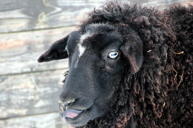 Keywords: sheep black wool animal animals nature sheep face tongue licking foot