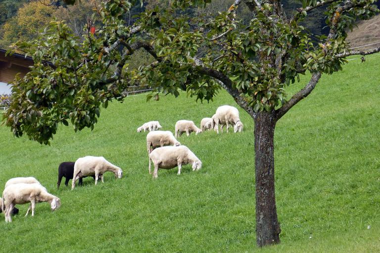 Keywords: sheep flock flock of sheep graze animals pasture wool grass meadow nature idyll