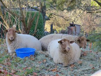 Keywords: sheep flock pasture meadow grass animals wool flock of sheep