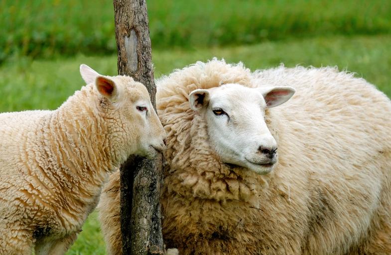 Keywords: sheep lamb affection cute pasture