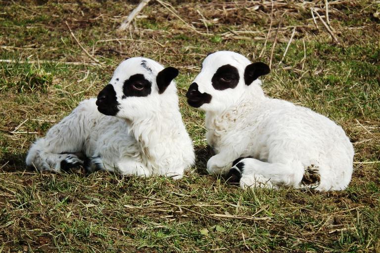 Keywords: sheep lamb lambs meadow cute wool brothers young animals pillar