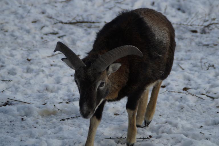 Keywords: sheep mouflon winter snow winter fur wintry cold white snowy animal mammal horns zoo petting zoo enclosure deer park