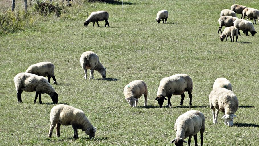 Keywords: sheep pasture meadow clouds livestock graze flock of sheep flock animals landscape