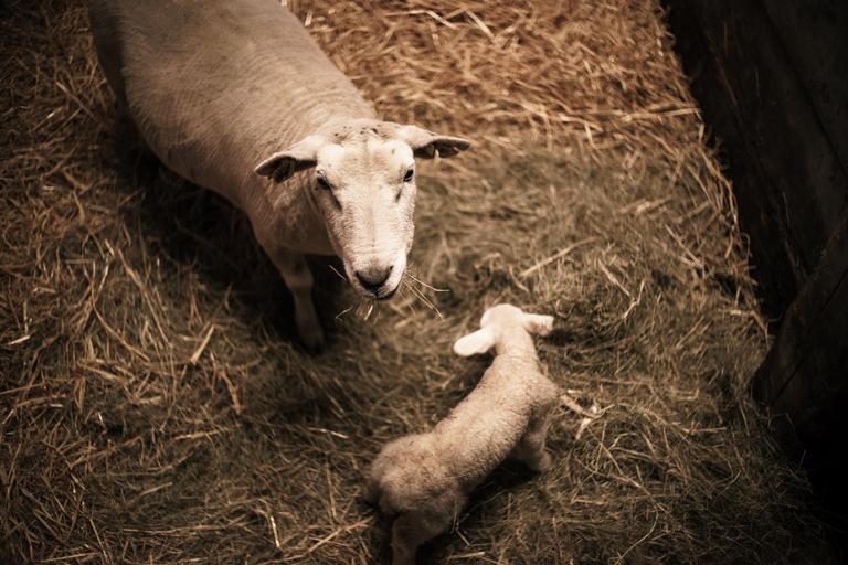 Keywords: sheepfold sheep lamb straw
