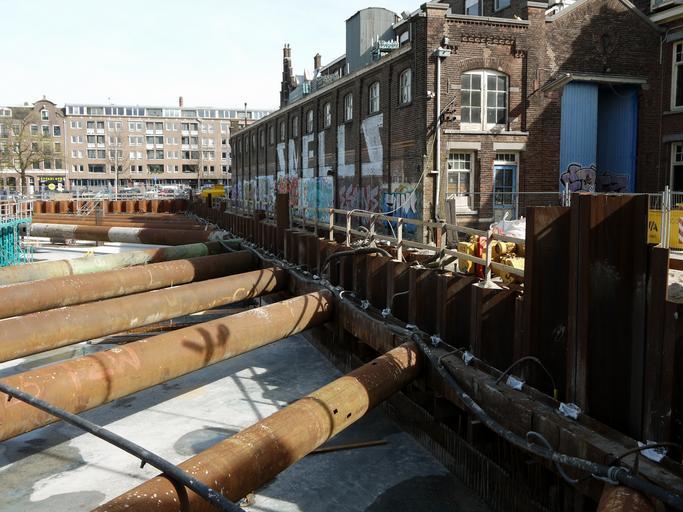Keywords: Sheet piling and rusty construction tubes around the large excavation concrete - in Amsterdam-West - Bouwput voor De Hallen, Kinkerbuurt amsterdam.jpg en Sheet piling and rusty construction tubes around the large excavation full of layers concrete -Amsterdam-West with olf former tram depot buildings to the left On the background the house-front of 19th century apartment blocks built circa 1900 on the quay of Bilderdijkkade nl Damwanden met grote dikke stempels in de hoeken van de grote bouwput voor het Hallen-project in de Kinkerbuurt Amsterdam Oud-West Rechts ligt de zijgevel van een gedeelte van de oude tram-remises aldaar Op de achtegronf de huizen-gevels van de Bilderdijkkade 2014-03-19 14 54 19 own Fons Heijnsbroek 52 366919 4 869015 cc-zero Uploaded with UploadWizard Amsterdam-West Construction sites in North Holland Sheet piling Category Construction excavations Earthworks Modern architecture in Amsterdam High-resolution images of the Netherlands 2014 in Amsterdam Light and shadow |