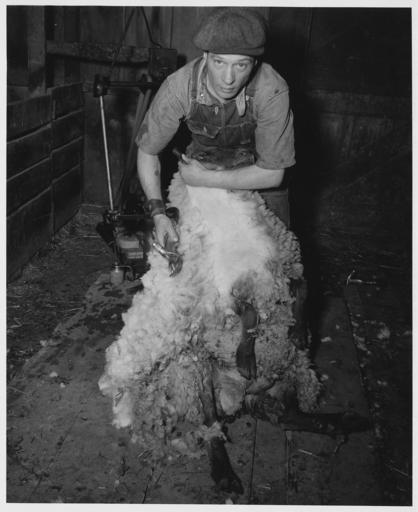| Keywords: Shelby County, Iowa.... Detailed description, Several farmers in Irwin have a few head of sheep - 2 . . . - NARA - 522465.jpg Several farmers in Irwin have a few head of sheep -- 20 or 30 usually With wool prices rising some of them wish they had more The man doing the shearing goes from farm to farm with his own apparatus An expert at this work he shears quickly and wastes none of the wool General notes 522465 Local identifier 83-G-44296 Department of Agriculture Bureau of Agricultural Economics Division of Economic Information ca 1922 - ca 1953 Rusinow Irving Photographer 5307166 <br /> Still Picture Records Section Special Media Archives Services Division NWCS-S National Archives at College Park 8601 Adelphi Road College Park MD 20740-6001 1941 05 02 - _Several_farmers_in_Irwin_have_a_few_head_of_sheep_-_2_ _ _ _-_NARA_-_522465 jpg jpg </gallery> NARA-cooperation PD-USGov Sheep shearing People with sheep Wolseley Sheep Shearing Machine Co Irving Rusinow |