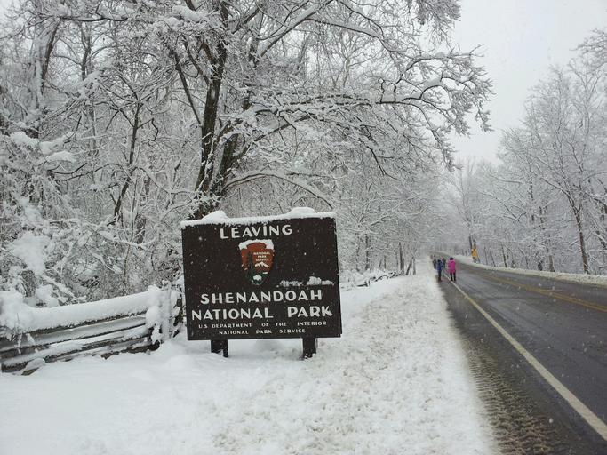 Keywords: Shenandoah National Park Wood Sign Board snow winter road white