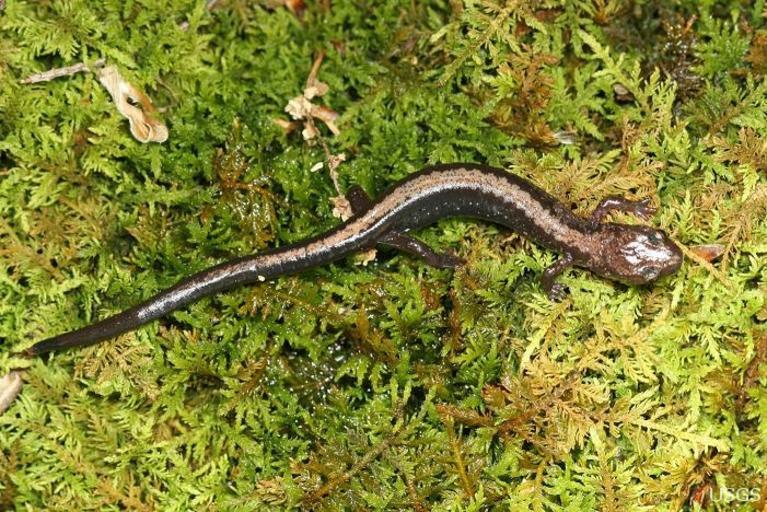 | Keywords: salamander shenandoah shenandoah national park shenandoahnationalpark biology ecosystem ecology climate change climatechange climate usgs science amphibian animal outdoor bird lizard The Shenandoah salamander is a small, terrestrial woodland salamander found only within the Shenandoah National Park. Salamanders are important, ecologically, because of their predation on insects and other invertebrates, soil aeration and influence on soil dynamics brought about by burrowing, and they are a food source to other forest animals. Their predation on insects also influences ecosystem processes such as decomposition.Like other high-elevation species, this salamander is severely threatened by climate change, which is expected to result in dramatic temperature and moisture changes in the Appalachians. Credit: Matthew Stover, USGS. The Shenandoah salamander is a small, terrestrial woodland salamander found only within the Shenandoah National Park. Salamanders are important, ecologically, because of their predation on insects and other invertebrates, soil aeration and influence on soil dynamics brought about by burrowing, and they are a food source to other forest animals. Their predation on insects also influences ecosystem processes such as decomposition.Like other high-elevation species, this salamander is severely threatened by climate change, which is expected to result in dramatic temperature and moisture changes in the Appalachians. Credit: Matthew Stover, USGS. |