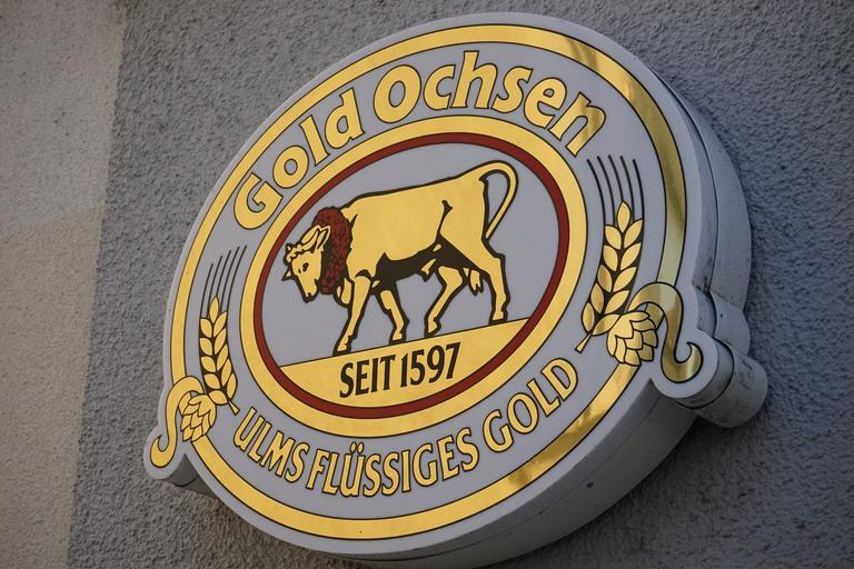Keywords: shield advertising advertising sign lettering ox bull ox gold golden brewery beer brewery gold ox