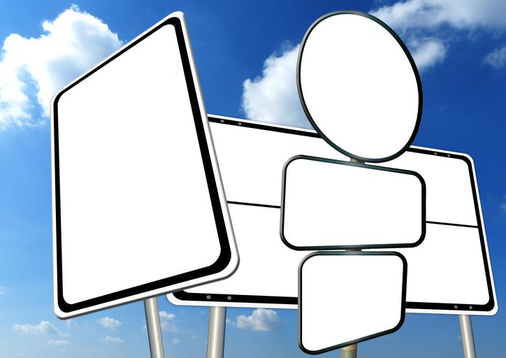 Keywords: shield directory note sky signposts clouds town sign place name sign empty label insert text