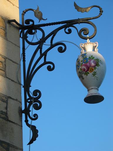 Keywords: shield vase jug flower bouquet wrought iron advertising