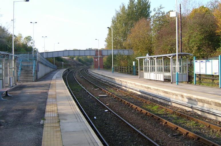 | Keywords: Shildon railway station.jpg  Shildon railway station on the Tees Valley Line The bridge is a footbridge connecting the platforms - it's accessed on this side by the steps/ramp on the platform while on the other side the path runs behind the trees to the ramp behind the shelter and timetable noticeboard blue handrail just visible The exit on this platform between the shelter and steps/ramp leads to the Locomotion railway museum opened in 2004 The main line connection to the Shildon site is a short distance behind the camera connected to this side of the track The exit on the other platform leads to housing The actual centre of Shildon is around 1km away in the general direction of the photo The line curves away to the north west before a gradual curve back to the west before reaching the last stop on the line Bishop Auckland station Behind the camera the track heads south east on a straight alignement to Newton Aycliffe station English Wikipedia 2003-01-01 Cacolantern wikipedia en en wikipedia Cacolantern Original upload log en wikipedia Ultra7 CommonsHelper en wikipedia Shildonrailwaystation jpg 2007-10-22 11 17 Cacolantern 2272×1504× 1736279 bytes <nowiki> </nowiki> Shildon railway station |