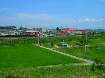 Keywords: ShinainumaEki2005-7-15b.jpg Shinainuma Station of the Tōhoku Main Line Matsushima Miyagi prefecture Japan 2005-07-15 own assumed Kinori ja 品井沼駅 撮影位置 - 宮城 島町 幡谷 北西向き 撮影日 - 2005年7 15日 撮影 - Kinori プラットホーム 階段 緑の屋根の駅舎を見る 夏の水田の緑が色濃い en Shinainuma Station Place - Hataya Matsushima Miyagi prefecture Japan Toward northwest Date - July 15 2005 Photographer - Kinori We see the platform the stairway and the station building of green roof Rice paddy fields are more green in summer es Estación Shinainuma Lugar - Hataya Matsushima la prefectura de Miyagi Japón Hacia noroeste Fecha - Julio 15 2005 Fotógrafo - Kinori Vemos la plataforma la escalera y el edificio de la estación tiene el tejado verde Los arrozales de agua son más verde en verano Shinainuma Station |