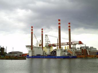 | Keywords: Ship Friedrich Ernestine.jpg en The heavy-lift jack-up vessel Friedrich Ernestine for the construction of offshore windfarms in the port of Bremerhaven The ship is named after a coal mine in the Ruhrgebiet de Das Errichterschiff Offshore-Installationsschiff Friedrich Ernestine bei der Lloyd-Werft in Bremerhaven own Tvabutzku1234 2012-06-17 53 33 46 38 N 8 33 12 06 E region DE_heading NE Friedrich Ernestine ship 2012 Ships in Bremerhaven Cc-zero | ||||