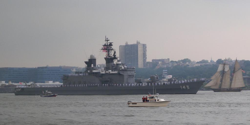 | Keywords: Shirane Weehawken jeh.jpg en Looking west at Japanese warship during cloudy Parade of Sail 2012-05-23 own Jim henderson 40 76441 -74 00308 heading W cc-zero Fleet Week New York 2012 Uploaded with UploadWizard JS Shirane DDH-143 Manning the rail in the Japanese Navy Japan Self-Defense Forces in the United States |