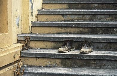 Keywords: shoe age shoe boots from the shoes tilted stairs break up morbid broken old dirty scan kb dia
