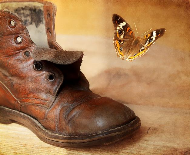 Keywords: shoe old antique leather leather shoe butterfly painting digital painting close