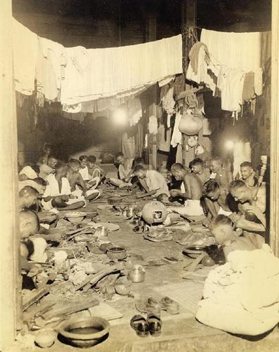 | Keywords: Shoemaking and laundry shop in Calcutta in 1945.jpg Downone alley you might see a shop such as this one packed with shoemakers sewing and cutting or pulling on a hookah such as the one at right Combined with the shoemaking enterprise is a laundry dhobie During monsoon dhobie must contrive to dry clothes inside tho hampered by shortage of sheltered spaces The South Asia Section of the Van Pelt Library University of Pennsylvania recently acquired from a bookdealer a photograph album consisting of 60 photographs of Calcutta taken most likely between 1945-1946 The photographer Mr Clyde Waddell also provided the interesting glosses accompanying each photograph Several attested copies of this work has emerged including one with a 'title page' held by the Southeastern Louisiana University in Hammond Louisiana Mr Waddell was a military photographer Many of his captions sound like annotations that would be found in a typical military magazine The album begins with several general long shots of Calcutta and ends with a picture of dhobi-s washermen washing clothes The text accompanying the last photograph also sounds as if the author intended to finish with that picture of one of the great mysteries of India The annotations have been included because of their intrinsic interest not only to the photographs but to a 'typical' American impression of India at this time 1945 http //www library upenn edu/collections/sasia/calcutta1947/ Clyde Waddell other versions PD-USGov Van Pelt Library University of Pennsylvania - Clyde Waddell Calcutta 1940's photos Uploaded with UploadWizard Shoemakers from India Shoemaking workshops Laundry in India |