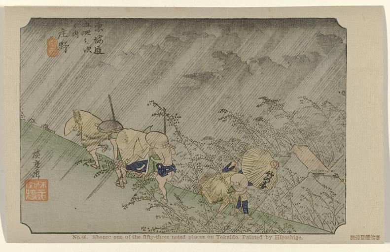 | Keywords: Shono-Rijksmuseum RP-P-2010-310-95-46.jpeg accession number RP-P-2010-310-95-46 Utagawa died 1858; Fujisawa Bunjirô Fujisawa BunjirôHiroshige I credit line nl Bedienden met draagmand trotseren de regen in de bergen Label Line mentioned on object Hiroshige I Utagawa 1797 - 1858 1906 kleurenhoutsnede; lijnblok in zwart met kleurblokken Collection prenten; Japan collectie kaart Height mm 90 kaart Width mm 141 exhibition history cardboard object history Acquisition 2009-10-13 object type PD-US PD-old Data and photography rights All data and all images made available through the API are either in the public domain or are subject to a CC0 license https //www rijksmuseum nl/en/api/terms-and-conditions-of-use cc-zero place of creation Japan http //www rijksmuseum nl/collectie/RP-P-2010-310-95-46 http //hdl handle net/10934/RM0001 COLLECT 490330 handle Shono Uploaded with GWToolset Rijksmuseum RP-P-2010-310-95-46 http //www rijksmuseum nl/media/assets/RP-P-2010-310-95-46 Images uploaded by Fæ Japanese 20th-century prints in the Rijksmuseum Amsterdam Images from the Rijksmuseum |