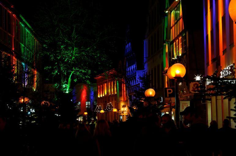 Keywords: shopping street evening wallwasher osnabrück christmas market vibrant color