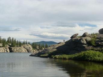 Keywords: Shoreline Eleven Mile Reservoir.JPG A view of the rocky north central shoreline of Eleven Mile Reservoir Colorado own 2010-07 Corinne68 public domain Lakes of Colorado Cc-zero