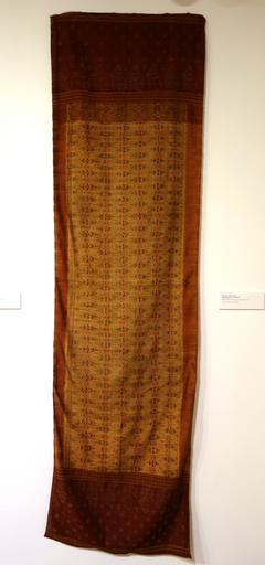 Keywords: Shoulder cloth (slendang), Bengkulu, Sumatra, Indonesia, early 20th century, silk, silver thread - Textile Museum of Canada - DSC01001.JPG en Exhibit in the Textile Museum of Canada 55 Centre Avenue Toronto Ontario Canada Photography was permitted in the museum without restriction 2013-07-04 14 24 04 own Daderot cc-zero Textiles in the Textile Museum of Canada Uploaded with UploadWizard