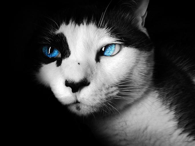 Keywords: siamese cat colorized blue eyes portrait feline face domestic animal black and white shorthair looking pet kitty vertical free image royalty free