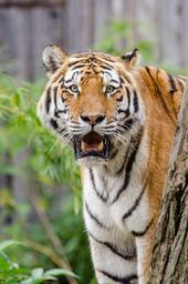 Keywords: siberian tiger feline big cat animal wildlife nature mammal carnivore predator striped big portrait head looking hunter