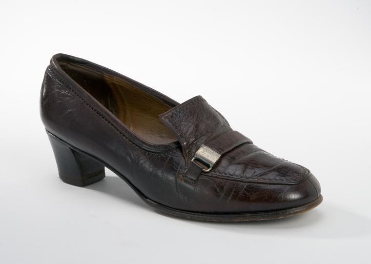 | Keywords: Sibyllas bruna sko - Livrustkammaren - 75398.tif Höger promenadsko i mörkbrunt läder med svagt rundad tå och mellanhög klack Pumpsmodellen skuren i två stycken med söm mitt bak och mitt fram <br/>Ovanlädret förenas med de två styckena i en söm längs med tåpartiet och avslutas med en fyrkantig plös Under plösen går mellen de två sidstyckena ett resårband och ovanpå plösen sitter en läderem 15 mm bred spänd med ett metall spänne på vänster sida Dekorsöm i brunt längs med ovan lädrets ytterkant och upp längs med plösen samt längs med ovankanten på bakstycket Skons övre kant kantad med ett brunt skinnband b 12m <br/>Skon och plösen fodrad med ljusbrunt skinn Extra mörk brunt foder i hälen <br/>Inner sula av ljusbrunt skinn bakre delen och trampet fodrad med en extra sula med företags<br/>tryck i guld B 4529 // ESPECIALLY FOR AB NORDISKA KOMPANI //'NK-märke' // BALLY // SWITZWERLAND // SOUPLEMENT // PONTE R // SHANK // PAT NR 991415 På höger sida tryckt 5 5 5 506645 8 <br/><br/>Yttersula av rödbrunt läder Märkt under hålfoten med 5 1/2 och 5 <br/>Klack av rödbrunt trä med stiftlapp i gummi fäst med fem små metallstift original caption Sibyllas bruna sko LRK 12032 <br/> Nyckelord Loafer Sko Bruna Dammode Klacksko Föremålsbild 1957 leather Färg mörkröd ljusbrun material läder size mm 50 klack size mm 30 klack g 20 size mm 250 size mm 80 sula LRK Sibylla hertiginna av Västerbotten place of origin original filename lm_dig2303_12032 48627 inventory number LRK 12032 75398 CC-BY-SA Göran Schmidt Göran Schmidt Footwear in Livrustkammaren Fashion in 1957 Female clothing Shoes on white background Media contributed by LSH dim-with multiple size templates Media contributed by LSH unmatched creator Media contributed by LSH unmatched keyword Color images from Livrustkammaren Media contributed by LSH 2013-10 |