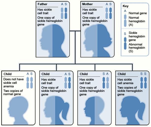 Keywords: Sickle cell 02.gif en The image shows how sickle hemoglobin genes are inherited A person inherits two hemoglobin genes ”one from each parent A normal gene will make normal hemoglobin A A sickle hemoglobin gene will make abnormal hemoglobin S 2013-11-12 21 15 57 National Heart Lung and Blood Insitute NIH National Heart Lung and Blood Insitute NIH PD-USGov Uploaded with UploadWizard Sickle-cell anemia |