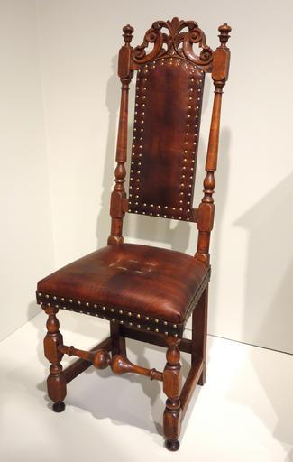 | Keywords: Side Chair, Boston, 1690-1710, maple and oak - Chazen Museum of Art - DSC02588.JPG en Exhibit in the Chazen Museum of Art University of Wisconsin-Madison Madison Wisconsin USA This artwork is old enough so that it is in the public domain Photography was permitted in the museum without restriction 2013-07-21 14 23 07 own Daderot cc-zero Furniture in the Chazen Museum of Art Uploaded with UploadWizard Furniture from Boston Massachusetts Leather chairs | ||||