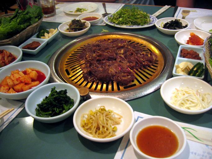 Keywords: hae woon dae haewoondae korean bbq food restaurant meal indoor dish buffet Many sides wait in anticipation while the meat begins to cook. Hae Woon Dae Many sides wait in anticipation while the meat begins to cook. Hae Woon Dae
