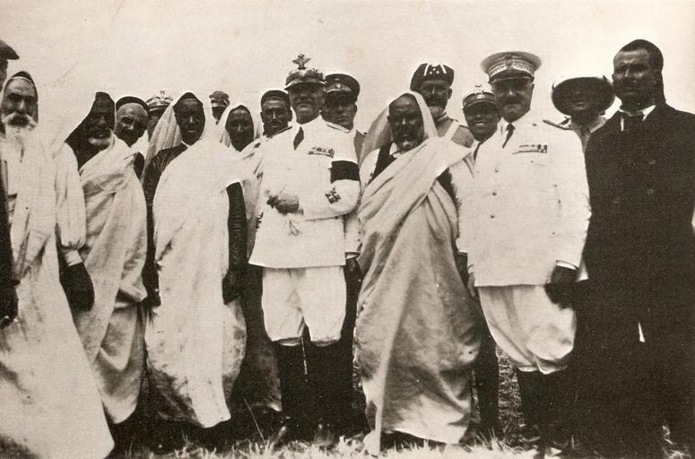 | Keywords: Sidi Rhuma meeting.jpg en Sidi Rhmua meeting attended by Omar Mukhtar second from left head of the Senussi resistance Pietro Badoglio fourth from right governor of Tripolitania and Cyrenaica and Siciliani second from right vice governor of Cyrenaica ar لقاء سيدي رحومة الذي حضره كل من عمر المختار الثاني من اليسار ، قائد المقاومة السنوسية، وبيترو بادوليو الرابع من اليمين ، حاكم طرابلس وبرقة، وسيشلياني الثاني من اليمين ، نائب حاكم برقة Garyounis University The Martyr Omar al-Mukhtar Festival Catalogue of Exhibition Arabic-English version Benghazi 1979 P 141 author 1929-06 PD-Libya 100px Attribution ImageNote 1 119 168 230 809 1583 1042 2 Omar Mukhtar ImageNoteEnd 1 ImageNote 2 596 105 218 935 1583 1042 2 Pietro Badoglio ImageNoteEnd 2 ImageNote 3 1055 97 293 929 1583 1042 2 Domenico Siciliani ImageNoteEnd 3 1929 in Libya History of Libya Omar Mukhtar Pietro Badoglio People of Italy in 1929 Domenico Siciliani |