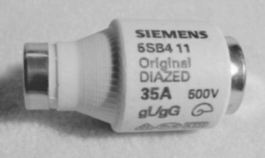 Keywords: SiemensD-fuse35AgG.jpg en D-fuse 35A gL/gG size II Siemens de D-Sicherung 35A gL/gG Größe II Siemens own Jjeka 2011-02-06 Cc-zero Diazed fuses Siemens