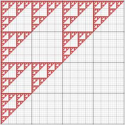 Keywords: Sierpinski triangle 256 top left.svg Sierpinski triangle in a 256x256 matrix Bin2svg ValidSVG own 2013 Mate2code Sierpinski triangles in binary square matrices Binary square matrix; 256x256 Compression matrices of 256-bit Walsh permutations |