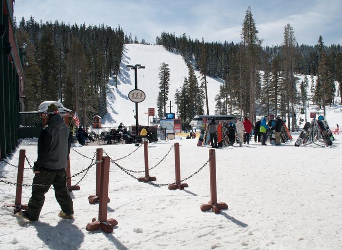 Keywords: sport snow outdoor skiing landscape piste mountain A snowboarder stands at the ticketing counter in foreground left. Snowboards and skis are propped up against stands on right, and a coffee shop (Java Junction) is on left. The beginner's lift (Easy Rider Express) and a blue square slope are visible in the far background. A snowboarder stands at the ticketing counter in foreground left. Snowboards and skis are propped up against stands on right, and a coffee shop (Java Junction) is on left. The beginner's lift (Easy Rider Express) and a blue square slope are visible in the far background. |