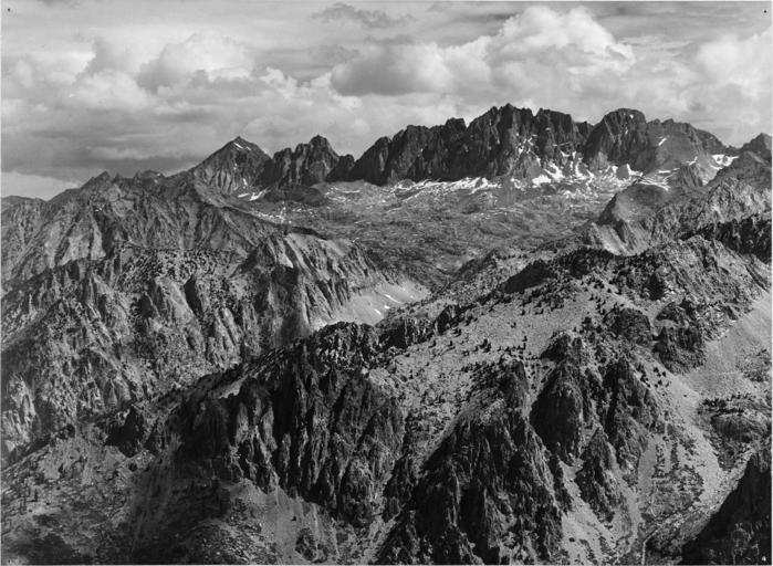 Keywords: sierra nevada landscape nature snow caped mountains california park sky clouds beautiful outside outdoor valley ravine gorge black and white